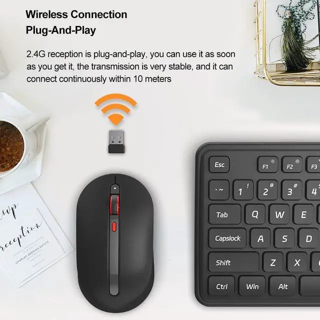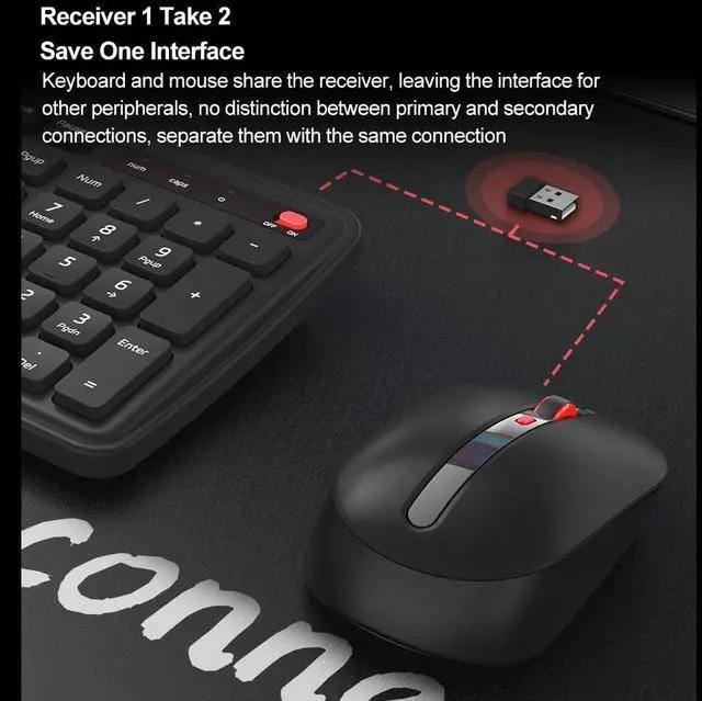 [STABLE CONNECTION]: No need for extra USB ports with the shared tiny receiver for both wireless pointing devices and keyboard. Experience upgraded 2.4G technology for reliability.