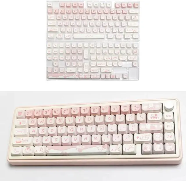 Elevates your typing with the lovely Party Kitten keycaps featuring a total of 140keys, perfectly for mechanical keyboards.