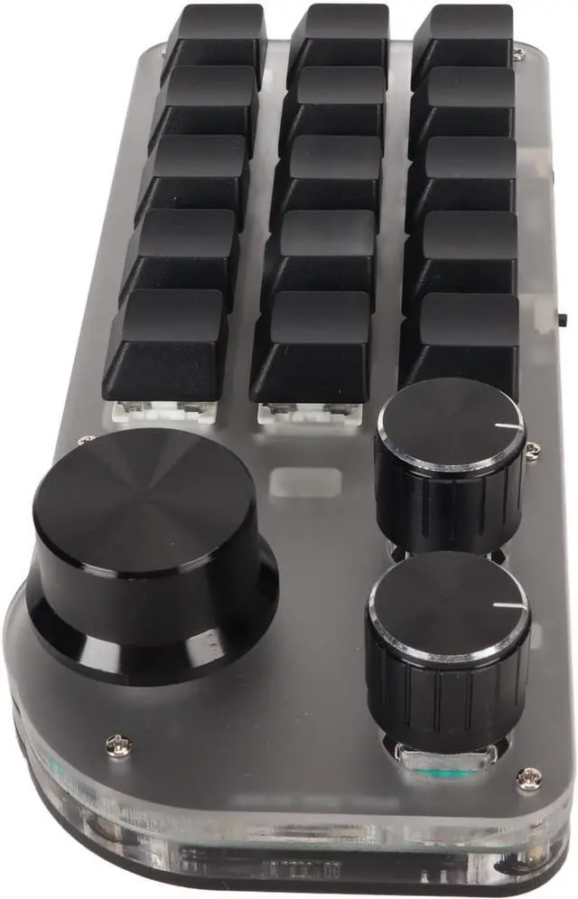 [Multi-functional Knob Design] : Featuring 3 knobs with click functions that can be used as mouse keys, offering various controls like zoom, music playback, and volume adjustment.