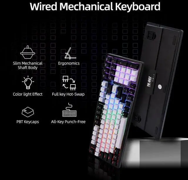 Durable PBT Keycaps for Long-Lasting Performance: YK002 mechanical gaming keyboard features high-quality PBT keycaps, ensuring long-lasting durability and resistance to wear. Combined with its compact design, this wired keyboard offers a premium experience for both gaming and work.