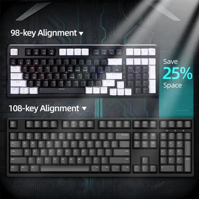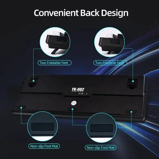 Compact Full Key Mechanical Keyboard for Space-Saving EfficiencyYK002 mechanical gaming keyboard features a Full Key compact layout, saving valuable desk space while maintaining full functionality. Perfect for both gaming and office use, its sleek design is easy to carry and fits effortlessly into a backpack.