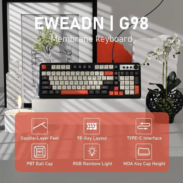 Compact 96% Layout & Dual Color Keyboard: The cream keyboard has a full-function 98-key layouthat maximizes space efficiency, preserving essential letters, numbers, and function keys.Enjoy the benefits of a space-saving, streamlined layout that still offers the full functionality you need for work or play.