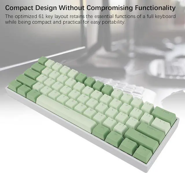 Hot Swappable Red SwitchesThe optimized 61 key layout retains the essential functions of a full keyboard while being compact and practical for easy portability. All keys non-conflict. Convenient to carry around for Gamer and Typist, save more space to your desktop.