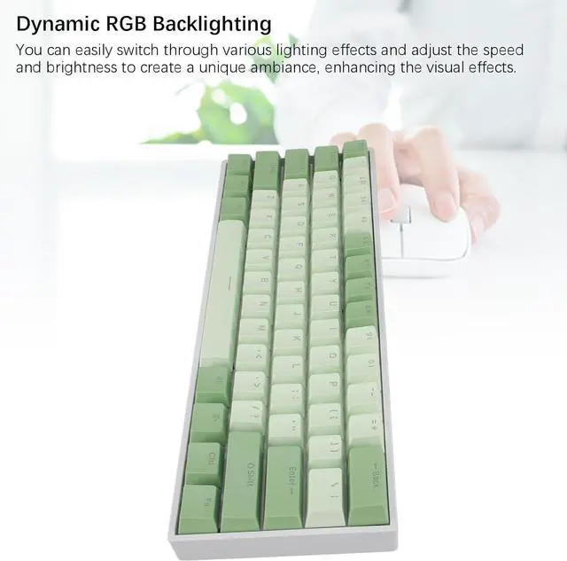 Dynamic RGB BacklightingYou can easily switch through various lighting effects and adjust the speed and brightness to create a unique ambiance, enhancing the visual effects. Immerse yourself in a customizable world of colors and lighting effects, allowing you to express your unique style and personalize your typing experience.