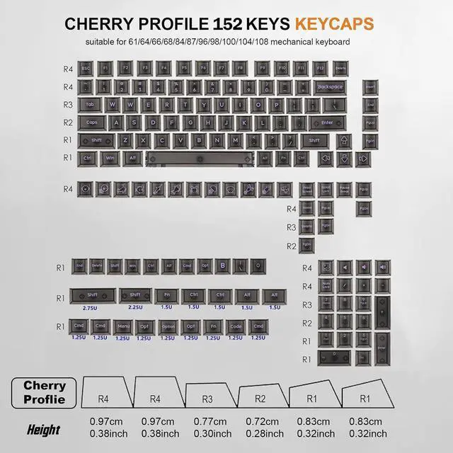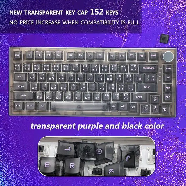 Elevates your typing with our 152 key Black Translucent Keycap Set,Meticulously crafted for mechanical keyboards ensuring a smooth and comfortable keystroke.