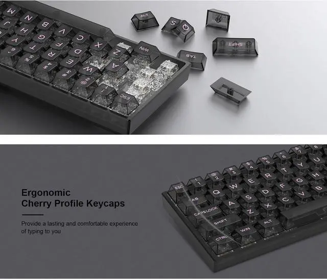 The keycaps offering a Clear look that enhances the aesthetic appeal of backlights keyboards while providing durability with wear PC