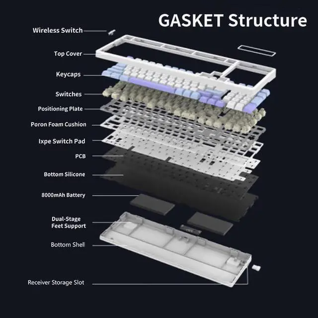 Gasket Structure: The design enhances typing comfort and reduces noise.