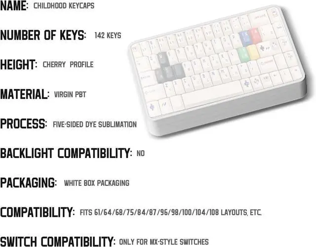 Wide Compatibility: Compatible with 61, 64, 68, 75, 84, 87, 96, 98, 100, 104, and 108 key layouts.