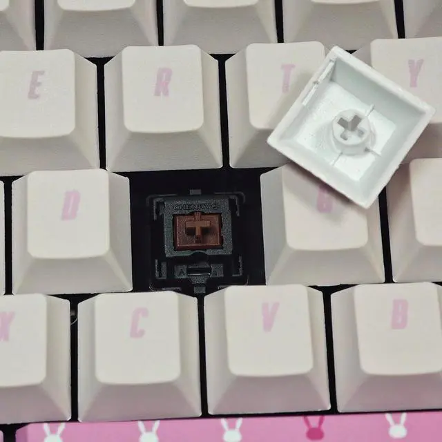 Cherry profile keycaps, PBT material, thermal sublimation process.