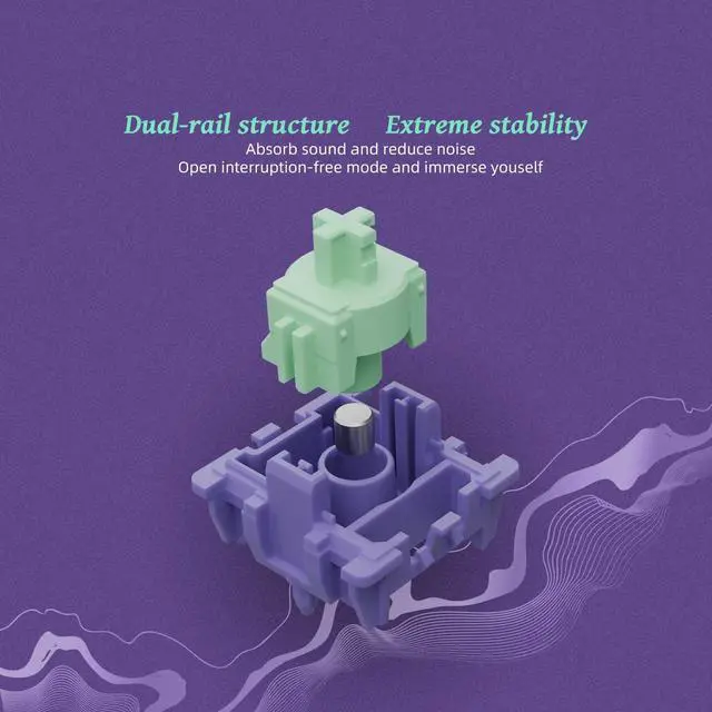 Dual-rail structure Extreme stability. Spotlight design, Fulfil the lighting effect of PCB SMD, making the light brighter, more even and more concentrated. Factory lubrication Effectively reduces noise, Smooth typing feel, long lifespan, durable and long-lasting Strong performance despite hundreds of millions of keystrokes.