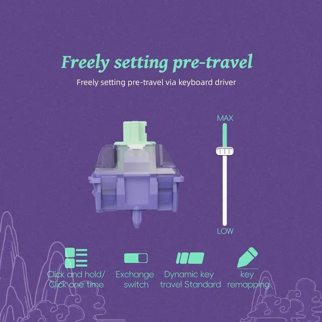 [Specs] Type: Linear, Initial Force: 35±5gf, Pre Travel: Freely setting, Total Travel: 3.7±0.2mm, Pre-Lubed: Yes, Keystrokes:100 million times keystrokes