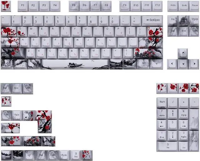 YUGSHNKFC 128Keys Blossom OEM Keycaps Thick Keycaps for 87/96/104/108 for Mechanical Keyboards Switches 7 Languages