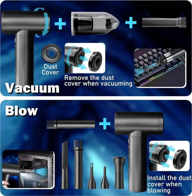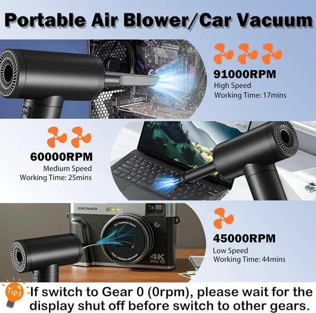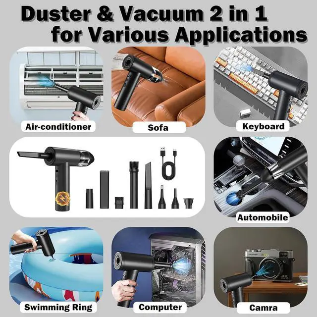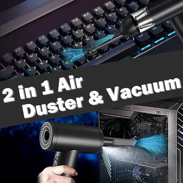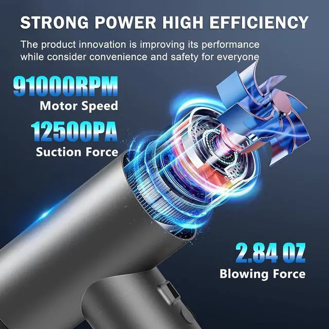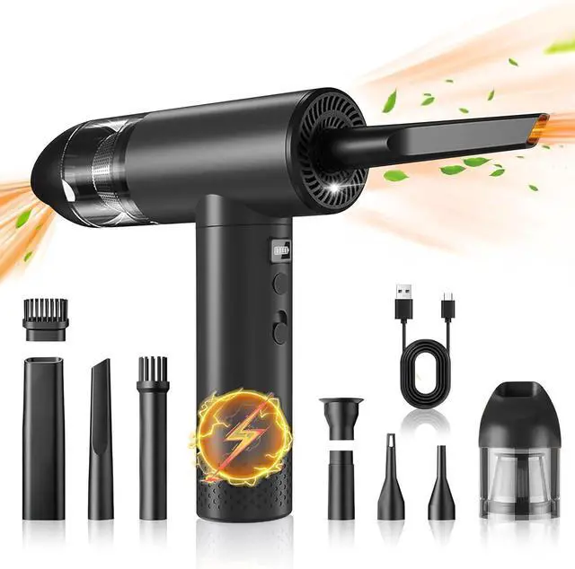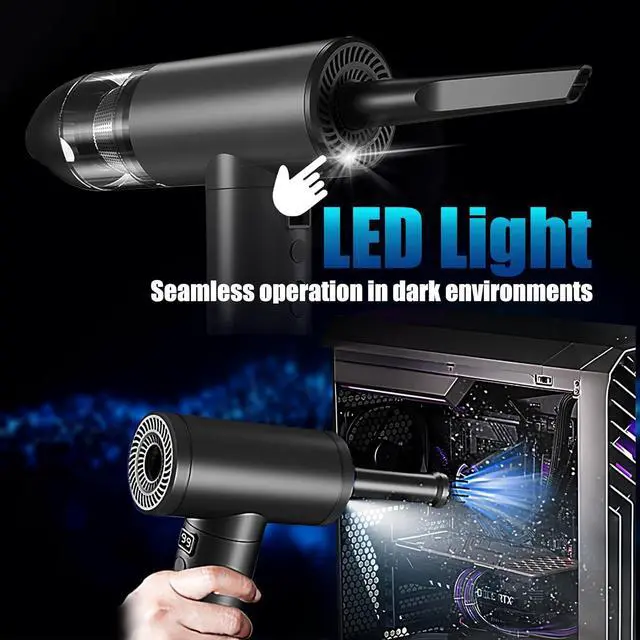 Welcome to the future of cleaning with the Hosslearlear computer vacuum cleaner for pc and car blower for drying turbo fan handheld 2 in 1, your ultimate solution for maintaining a dust-free environment. This jetdry blower is designed to inspire and empower you to achieve unparalleled cleanliness in your surroundings. Harness the power of the Hosslearlear turbo dryer blower for car, featuring a robust 91000rpm high-speed brushless motor that delivers an outstanding blow power of 2.84 ounces and a vacuum power of 12000pa. This dual-function turbodry is a game-changer in the world of cleaning, offering exceptional versatility with its 9 attachments, allowing you to effortlessly clean keyboards, inflate pools, dust off computer components, and even detail your car with precision. The jet dry blower car drying is engineered for convenience. The turbo jet blower rotates 180 degrees, providing ergonomic ease during use. The separate power switch at the bottom of the electric duster for pc, along with a 3 speed switch and LED light button, ensures seamless operation even in dimly lit environments. The pc vacuum cleaner and air duster built-in LED light illuminates dark areas, making this handheld blower mini air duster ideal for intricate cleaning tasks. Designed with a powerful 7500mAh battery and Type-C charging, this car dryer air blower for electronics provides up to 44 minutes continuous use at low speed, or 25 minutes at medium speed, or 17 minutes at high speed, after a full charge of 3 hours at 5V 2A. No more canned air duster for computers. The datavac electric duster blower is a good replacement of traditional air duster compressed air can. The dust blower for electronics compact and portable design makes storage a breeze, so you can always have the pc cleaner ready for action. The Hosslearlear hand blower is more than just a tool; it's an inspiration for those who seek excellence in their cleaning endeavors. Embrace the efficiency of this air duster rechargeable and let it transform your cleaning routine. Whether you're looking for a portable air blower for car detailing, electric air dusters for pc, or a mini turbo jet fan for dusting off Legos, this compress air duster adapts to your needs. Join the revolution of powerful cleaning with the Hosslearlear hand vacuum cordless rechargeable air duster 2 in 1. Unleash the super power pc blower duster within you and redefine the way you care for your electronics, vehicle, home and office. Let this compressed turbo blower inspire you to achieve spotless perfection in every task. Embrace cleanliness, embrace Hosslearlear.