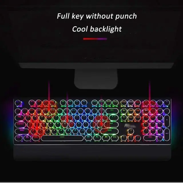 RKUVPAE Keyboard, Mechanical Gaming Keyboard, RGB Rainbow Backlit Keyboard 108 Keys Anti-Ghosting Wired Keyboard, for Home, Office, Game
