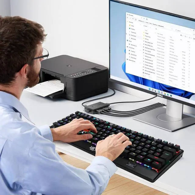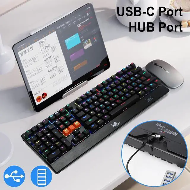 Wide Compatibility: you can switch between Windows and Mac system by the left side key. Featuring 1 extra extended USB-C hubs at the back, it simplifies your workspace by providing instant connectivity for peripherals