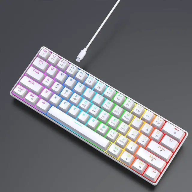 The 61-key corded mechanical keyboard desktop space saving. The detachable key and cable makes it more convenient for you to carry and store,meeting the needs of office and gaming.