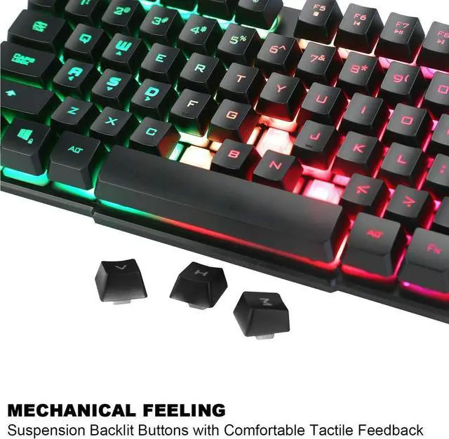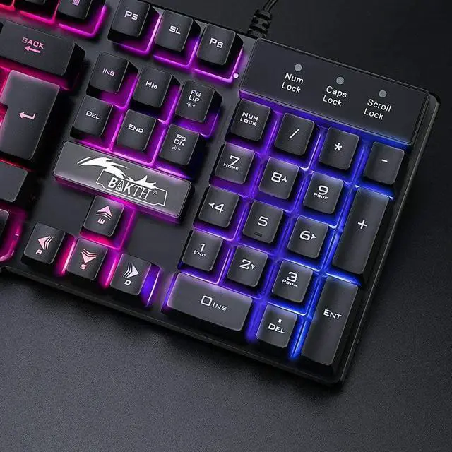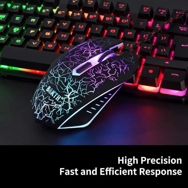 Rainbow backlit gaming keyboard, seven colors breathing backlit mouse. Ergonomic design for wired keyboard and mouse, comfortable to operate.
