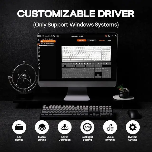 Hot-Swappable Custom Keyboard With the TH108 custom keyboard, you can personalize the functions, sounds, and tactile feedback of each keystroke to suit your desires. Experience various typing techniques and sound responses from renowned 5-pin mechanical switches using the hot-swappable PCBA of the TH108. Delight in the rich sound of Creamy Jade switches or enjoy the silent operation of Sea Salt Silent switches, both factory-lubed for immediate excellence. Use the intuitive driver to set up your keyboard's layout, macros, backlighting, and sensitivity, ensuring it seamlessly fits your gaming and productivity preferences.