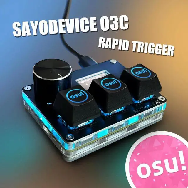 O3C OSU SayoDevice KeyboardThis keyboard with 3 Hall magnetic linear switches, 1 knob, 1 screen! TYPE-C,USB 2.0 high-speed 8000HZ.