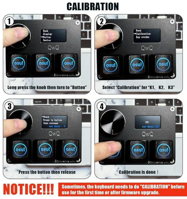 NOTICESometimes, the keyboard needs to do "CALIBRATION" ( The steps are shown in the figure ) before use for the first time or after firmware upgrade.