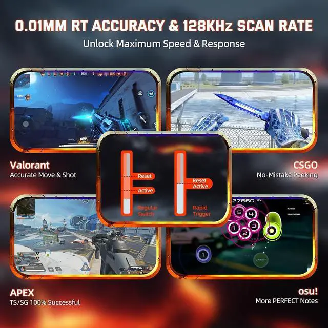 0.125 ms Latency & 8000 Hz Polling RateBoasting an 8000 Hz USB polling rate and 128 kHz scan frequency, the M82 HE achieves just 0.125 ms signal latencyeight times faster than standard keyboardsensuring lag-free input in even the most intense gaming clashes.