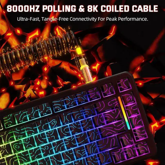 Premium 8KHz RGB Coiled Cable IncludedComes with a durable coiled cable supporting 8000Hz polling rate. Translucent housings with built-in RGB LEDs deliver vivid ambient glow at both ends. Metal connectors and flexible TPU jacket complete a pro-grade setup for rapid trigger keyboards.