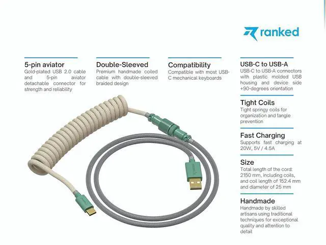 Premium handmade coiled cable with double-sleeved braided design