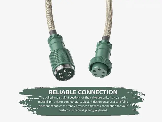 Gold-plated USB 2.0 cable and 5-pin aviator detachable connector for strength and reliability