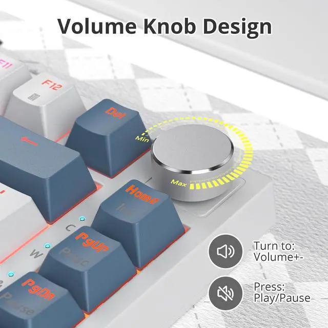 Rotary Knob Control: Navigate your digital world with ease using the integrated rotary knob. This intuitive feature lets you adjust your computer's volume, control media playback, and pause with a simple twist, putting essential functions at your fingertips for seamless multitasking.