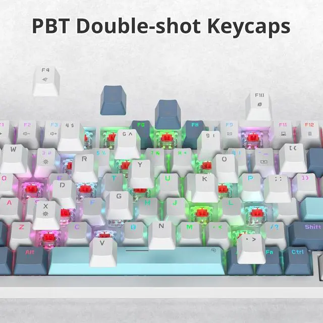 Premium PBT Keycaps and OEM Profile: Crafted from high-quality PBT material, using a double-shot injection molding process, our keycaps are built to withstand the rigors of daily use. With extra dye-sublimated keycaps, mix and match keycap colors and designs to create a keyboard that reflects your unique style and personality.