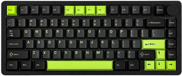 81 Keys 75% Compact Layout The Blade75 features a 75% layout that includes 81 keys and a knob, achieving an ideal mix of space-saving design and functionality. It ensures that all essential keys are included while minimizing the keyboard's size for better ergonomics. In addition, there's a metal knob positioned at the top right that enables simple and effortless control of media functions.
