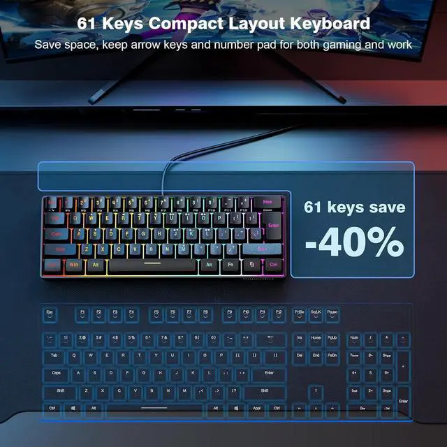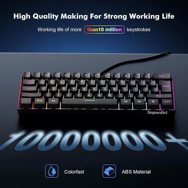 60% Compact Design The Snpurdiri keyboard adopts a classic 60% design, eliminating the numeric keypad for maximized space efficiency. Practical and versatile, this 60 percent keyboard seamlessly transitions between gaming, office tasks, and travelits compact size easily fits into any backpack.