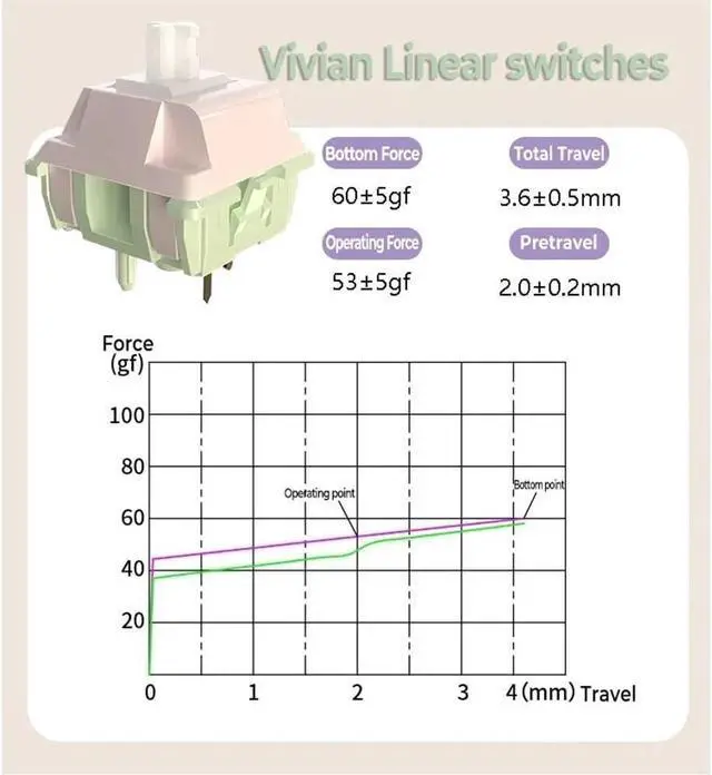 MMD Vivian Switch V2: The stem material of the Vivian is modified UPE. We all know that UPE creates a thocky and deep sound profile because of its softness, but softness means it can be easily broken. The modified and strengthened UPE stem solves this problem while still retaining the sound and smoothness of UPE.
