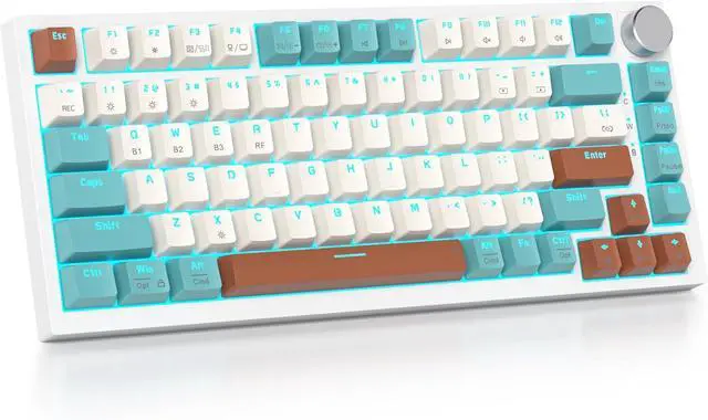 Professional Gaming FeaturesDesigned for gamers, this 81-key 75% layout bluetooth mechanical keyboard wireless saves space while retaining essential keys. The multifunction knob controls media, and you can program keys for macros to enhance gaming and productivity. N-key rollover and WIN key lock prevent accidental presses during intense gaming.Additionally, this rechargeable keyboard features a high-capacity 4000mAh battery, providing extended battery life to keep you powered throughout your day.