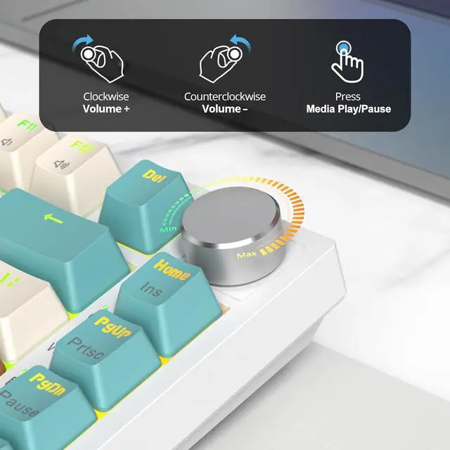 Multi-function Control Knob In both gaming and office modes, the knob allows for easy control and quick adjustments. Use the knob to adjust the volume and click the knob to control media play and pause.