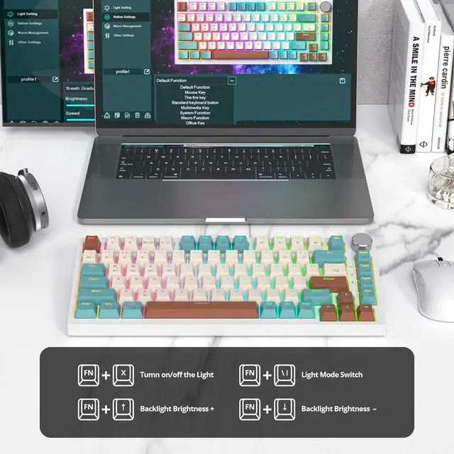 Customizable 16.8 Million RGB Backlitlight up RGB keyboard features 16.8 million RGB lighting color.Customize the lighting with effects via software, Elevate your gaming with dynamic RGB lighting. Customize the vibrant effects to match your style and create an immersive experience with this 75 percent wireless gaming keyboard.You can select the single color effect as wish, and if you can turn the backlight off if you do not need it.