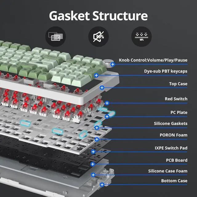 Custom Gasket MountDesigned with a custom gasket mount, it enhances typing comfort and reduces noise for a more pleasant typing experience.