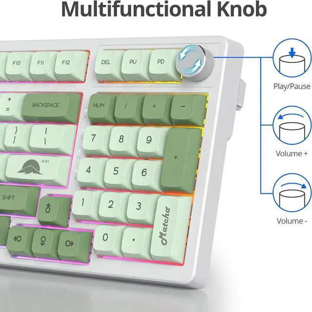 Hot Swappable RGB Gaming Keyboard with KnobIt offers hot-swappable switches for customization and RGB lighting effects. The knob provides easy control over settings during gaming. Designed to support both 3-pin and 5-pin switches, this custom keyboard offers unparalleled personalization and versatility.