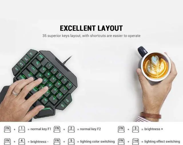 35-keyThe keyboard is designed with a 35-key portable design and is compact, not only easy to carry, but also saves space. The big wrist and ergonomics give you a relaxed gaming experience.