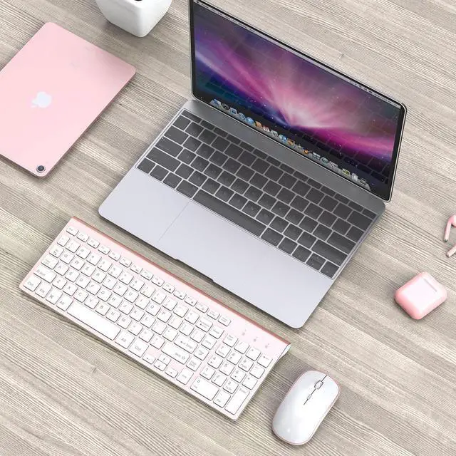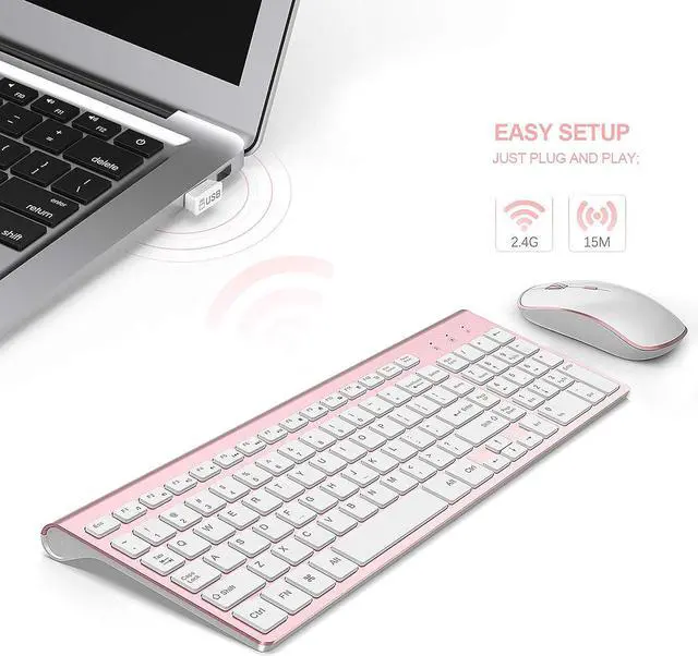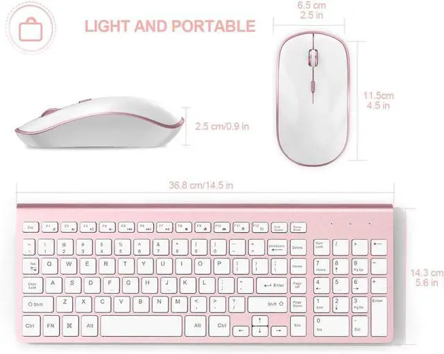 Lightweight Design - J JOYACCESS wireless keyboard, all keys are scissors and fork type low profile structure, ultra-thin (key stroke 2mm), responsive, low noise. The portable mouse is also built in with the latest noiseless switch for quiet clicks. The keyboard and mouse give a quiet world and a modern office desktop.
