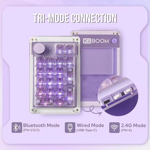Compact, Tailored for EfficiencyThe KiiBOOM Phantom 21 isn't just a keypad; it's a statement of efficiency and elegance. It's specifically designed for those who demand precision, flexibility, and style in one compact package. With 21 optimally placed keys, the Phantom 21 brings the power of a full-sized keyboard into a numeric-focused design. Experience an unhindered workflow, perfect for crunching numbers, data entry, and even gaming.