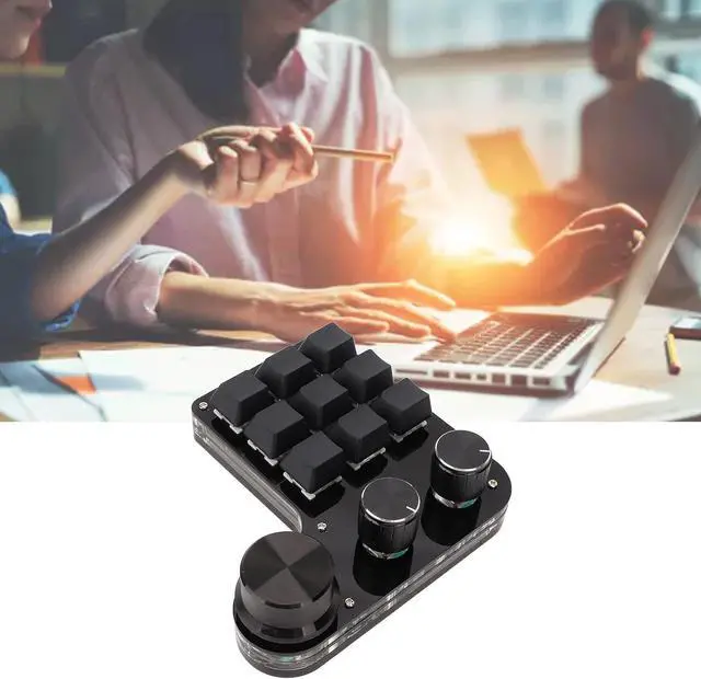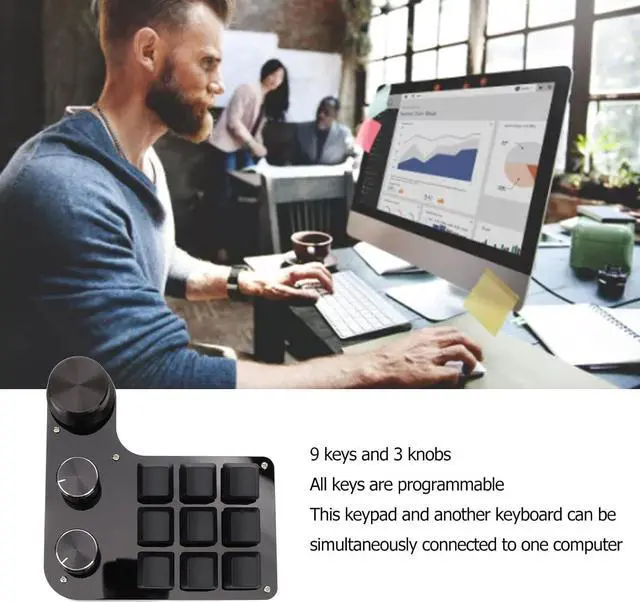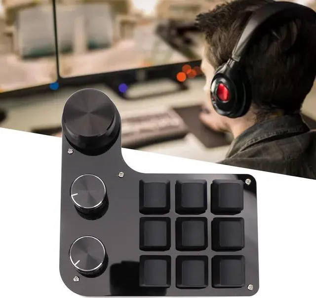 Knob Function: This programmable keypad has 3 knobs that can be set to zoom in and out, following song, the volume up, volume down, pause, play and other functions.