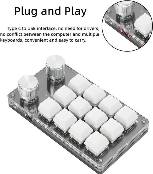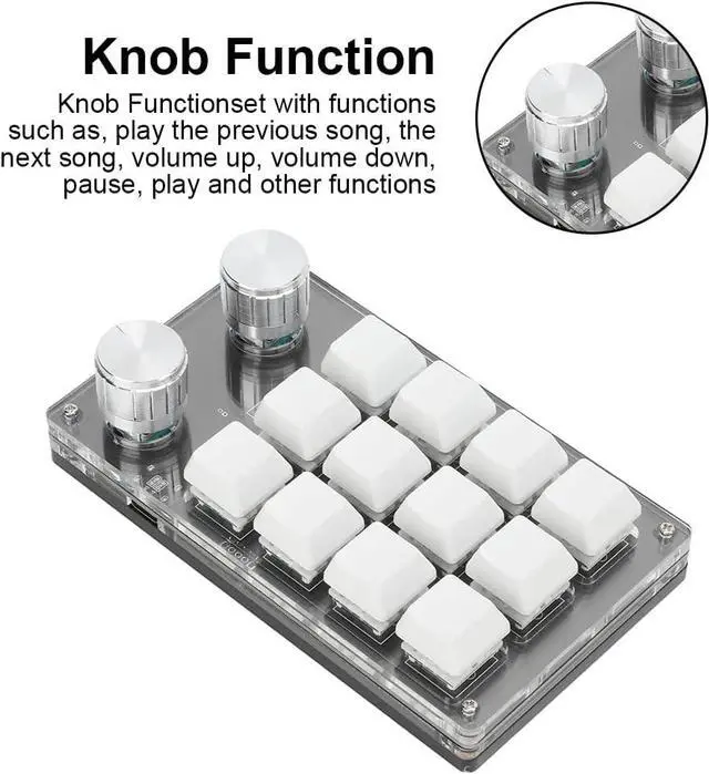 Settable Knob: The knob can also be set, with functions such as, play the previous song, the next song, volume up, volume down, pause, play and other functions. Type C to USB interface, no need for drivers, plug and play, no conflict between the computer and multiple keyboards, convenient and easy to carry.