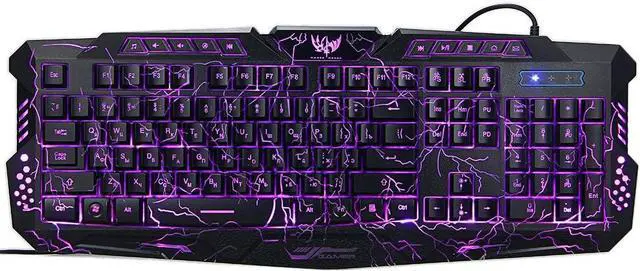 Bilingual keyboard: English and Russian. 3 backlight modes: Press FN + SL to switch the color - red, blue and purple.