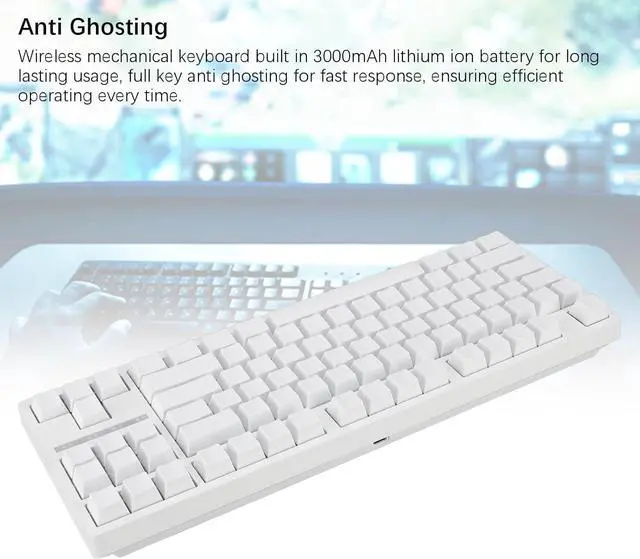 Anti Ghosting: Wireless mechanical keyboard built in 3000mAh lithium ion battery for long lasting usage, full key anti ghosting for fast response, ensuring efficient operating every time.
