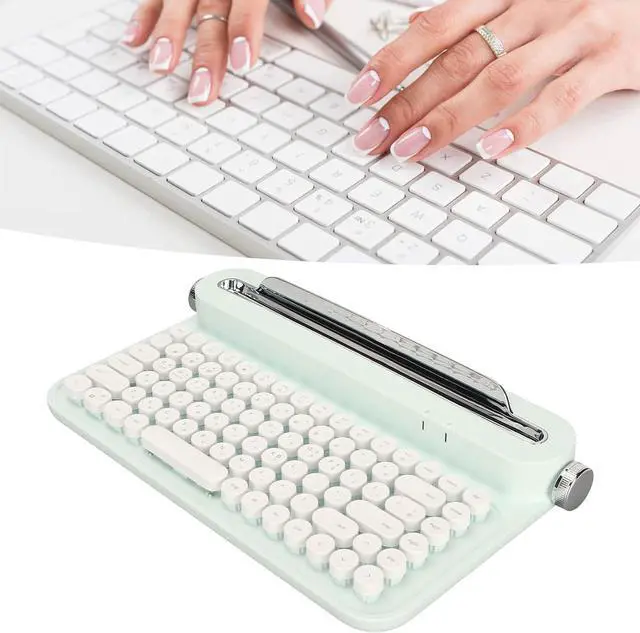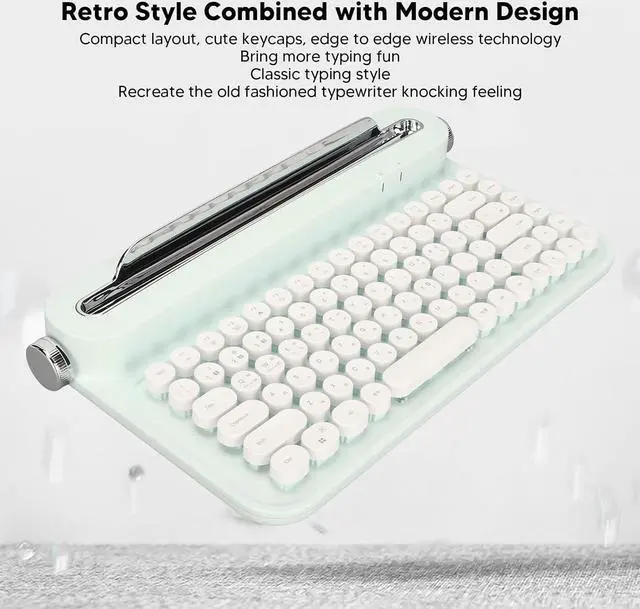 [Aesthetic Retro Design] Experience the blend of vintage charm and modern functionality with this beautifully designed keyboard. the eye-catching retro style features lovely keycaps and a compact layout that transports you back to the classic typewriter era while incorporating cutting-edge wireless technology. enjoy the satisfying tactile feedback that replicates the nostalgic typewriter knocking sensation, making every typing session a delightful experience.