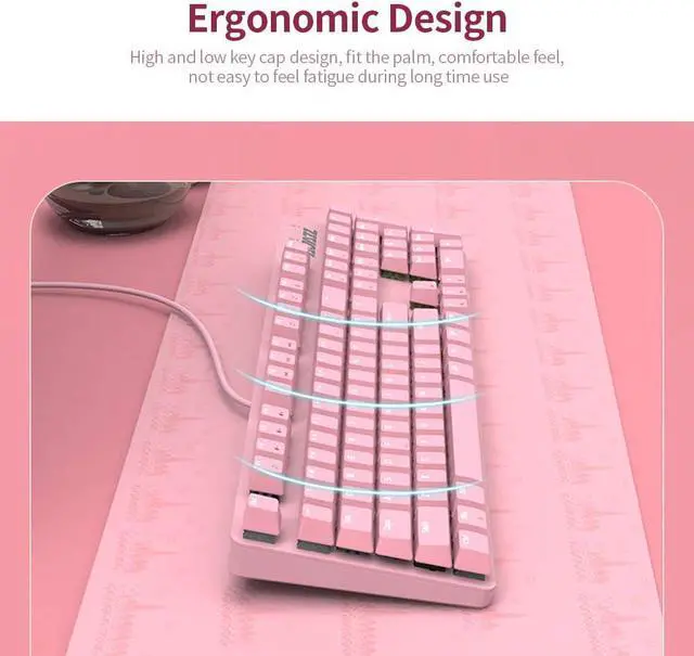 Ergonomic design, high and low keycap design, fit the palm, comfortable feel, not easy to feel fatigue during long time use.