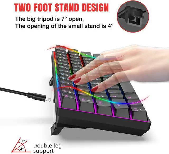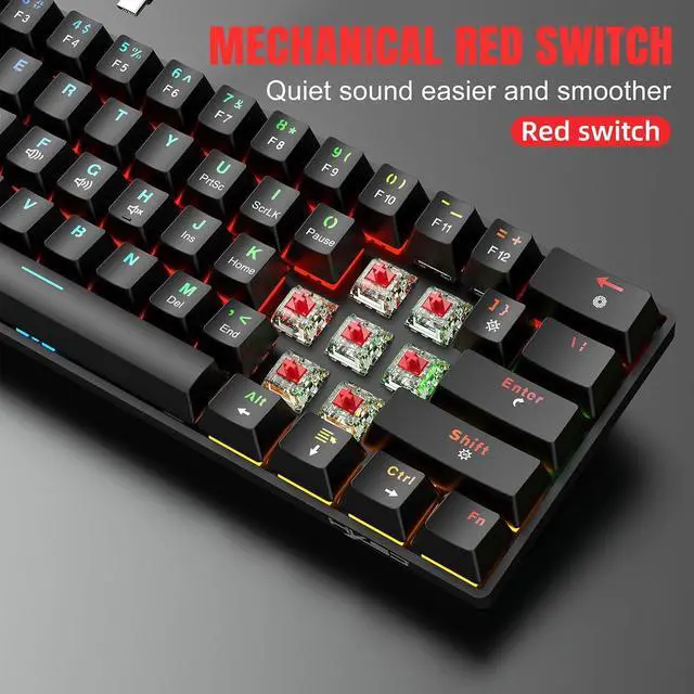 Portable Design: 61-Keys wired mechanical keyboard with compact layout, detachable keys, and cable design for easy carry and storage, great for on-the-go work.