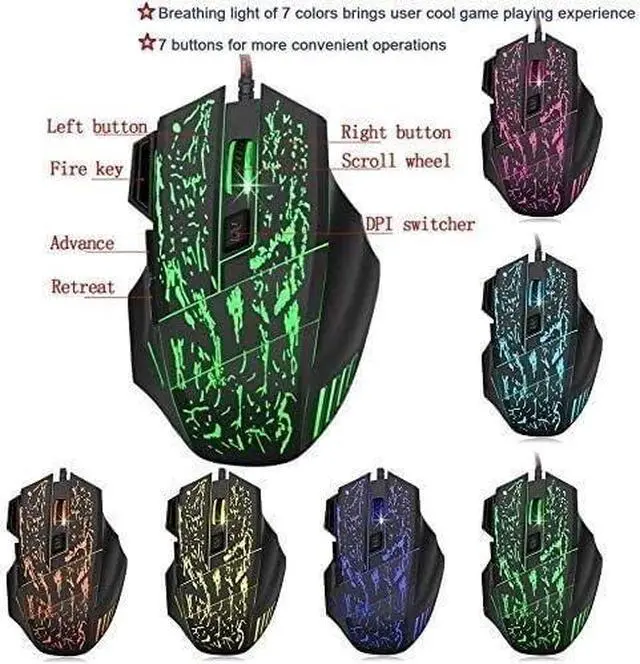 Gaming Keyboard and Mouse: 3 colors changeable backlit gaming keyboard with 3 grade adjust brightness and 2 breathing mode 4 colors circular breathing led gaming mouse 4 adjustable DPI (1200 1600 2400 3200). Rainbow backlights are pleasant not distracting make typing gaming and using the computer that much more fun.