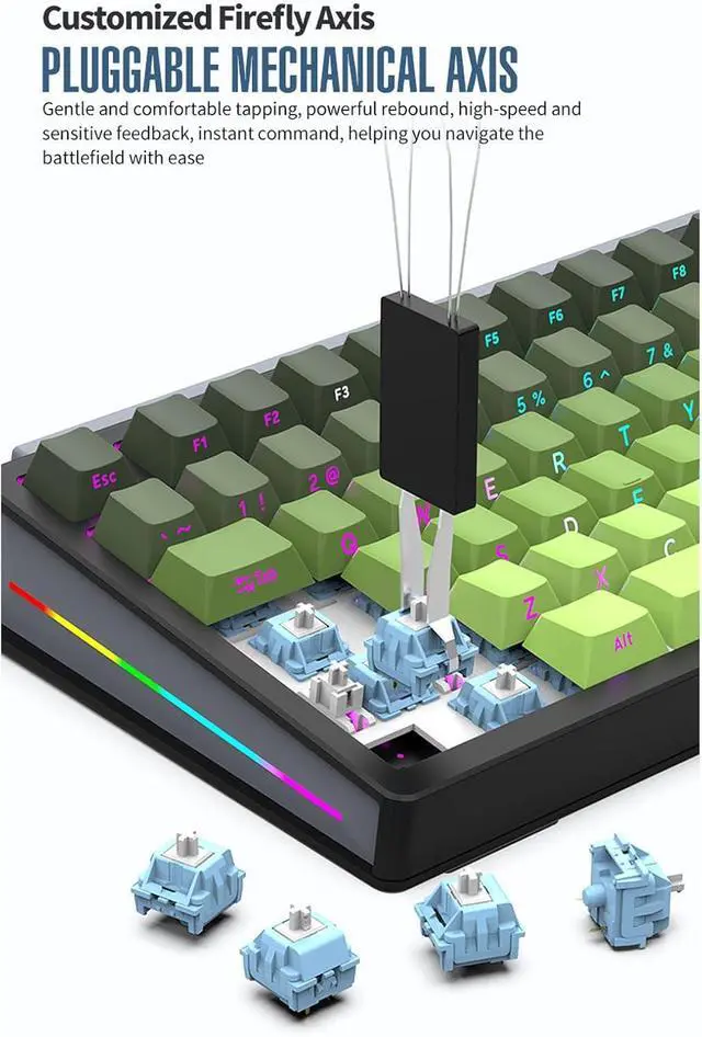 Customized Switches: Equipped with hot swappable mechanical switches, our keyboard offers a gentle and comfortable keystroke with robust rebound and responsive feedback. This ensures blazing fast command execution.